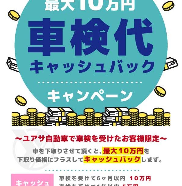 ユアサ自動車の車検後キャッシュバックキャンペーンです!