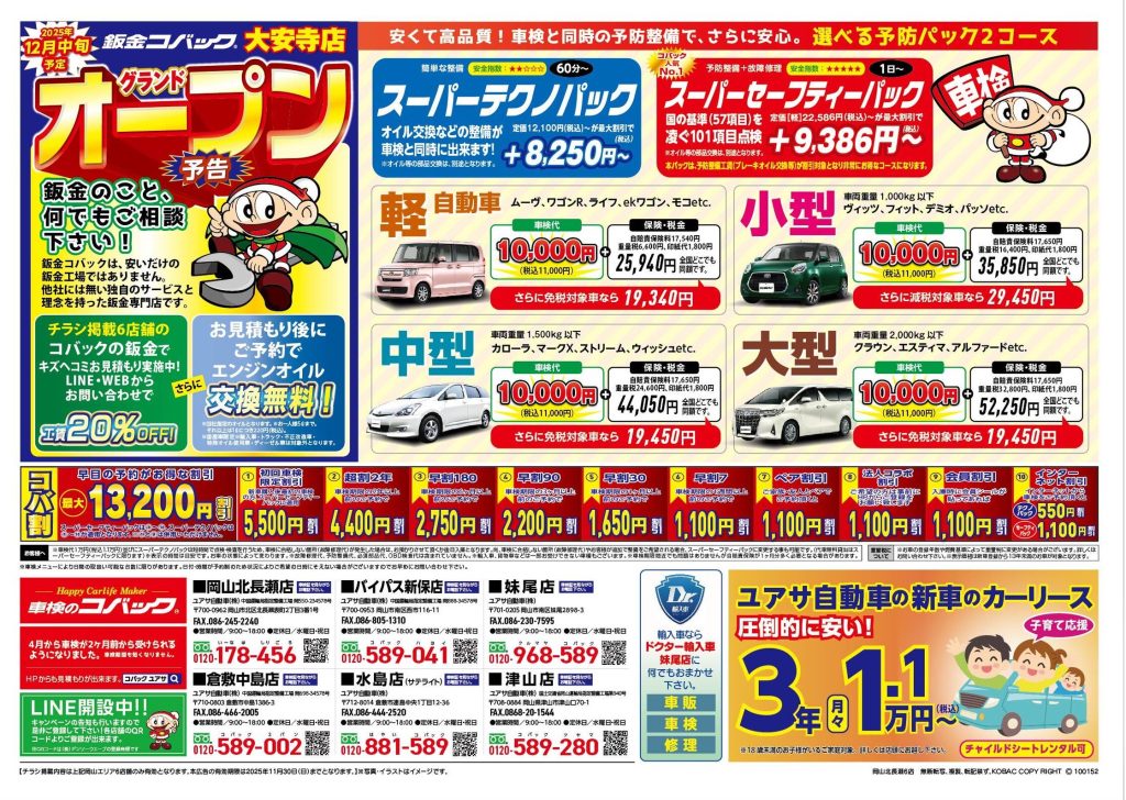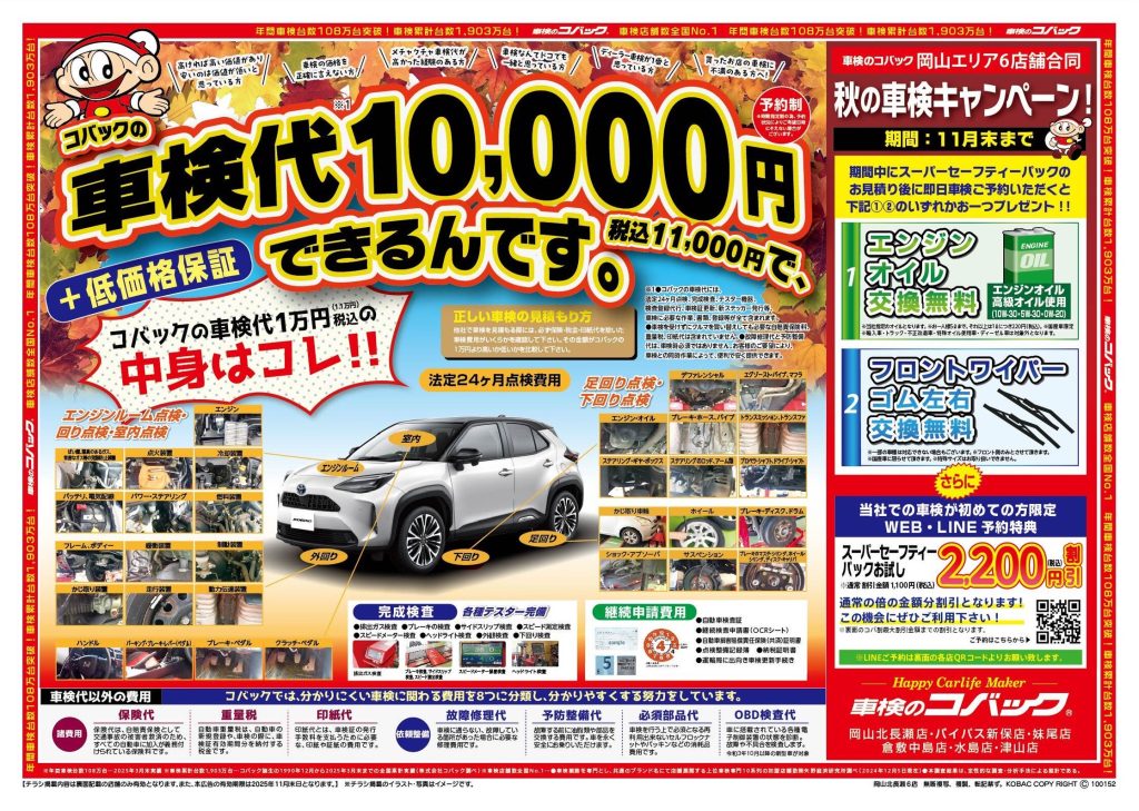 今回は、車検専門チェーン 「車検のコバック」岡山エリア店舗 から、とってもお得な情報が届きました!